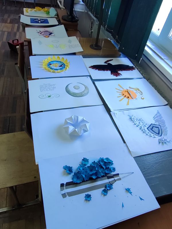 Завдання виконувалося в два етапи: виконання тематичної асоціативно-образної графічної композиції (перший етап) та виконання композиції з елементами рельєфу (другий етап) на форматі листа А-3.