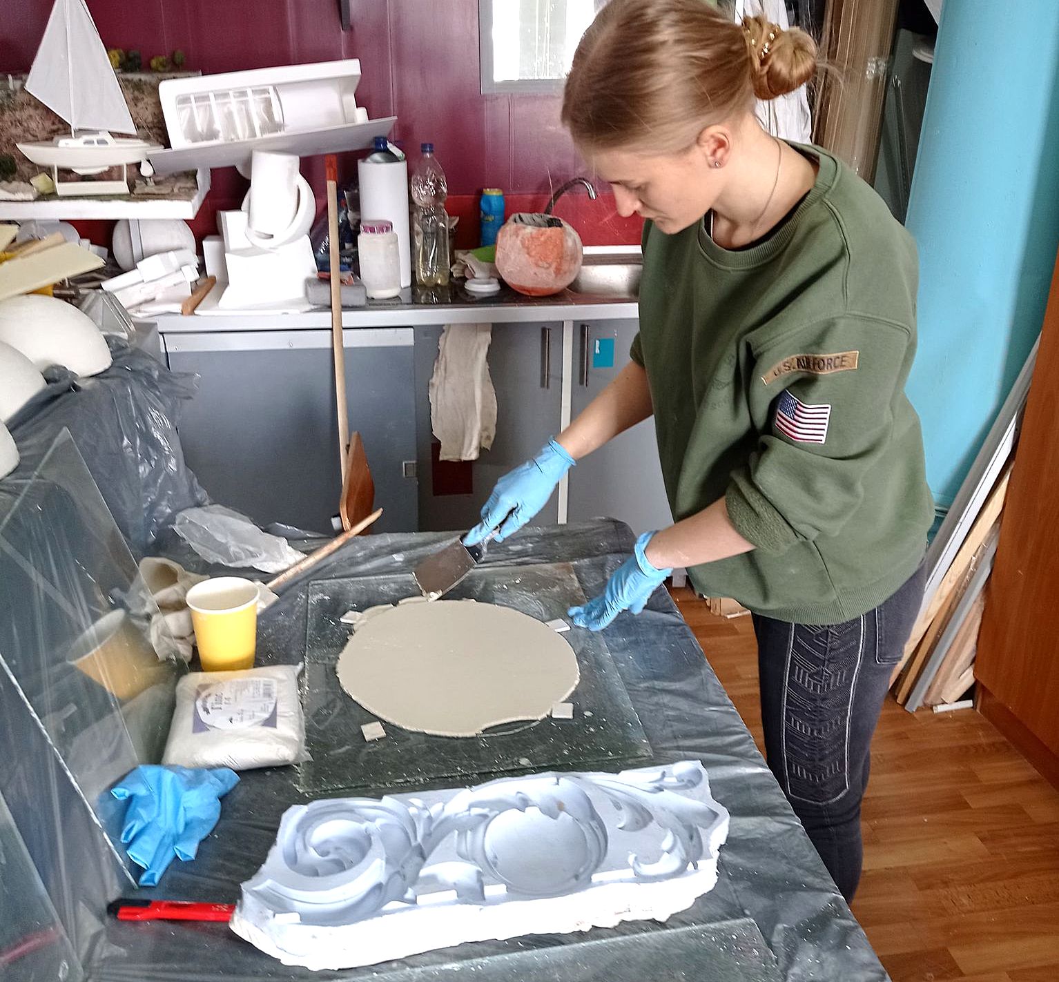 Студенти-другокурсники захоплені роботою. Опановують новий матеріал – гіпс.