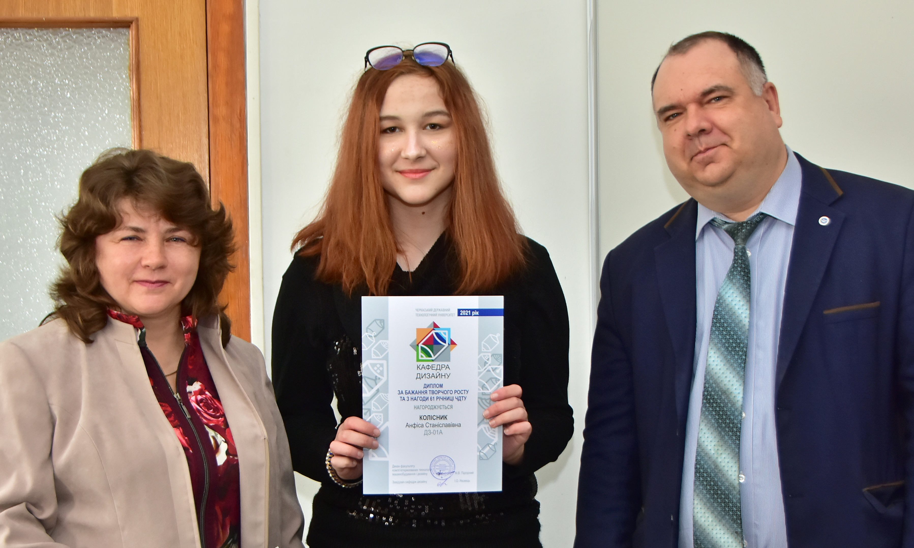 23 березня 2021р., з нагоди 61 річниці ЧДТУ, на кафедрі дизайну ФКТМД відбулося урочисте нагородження кращих студентів.