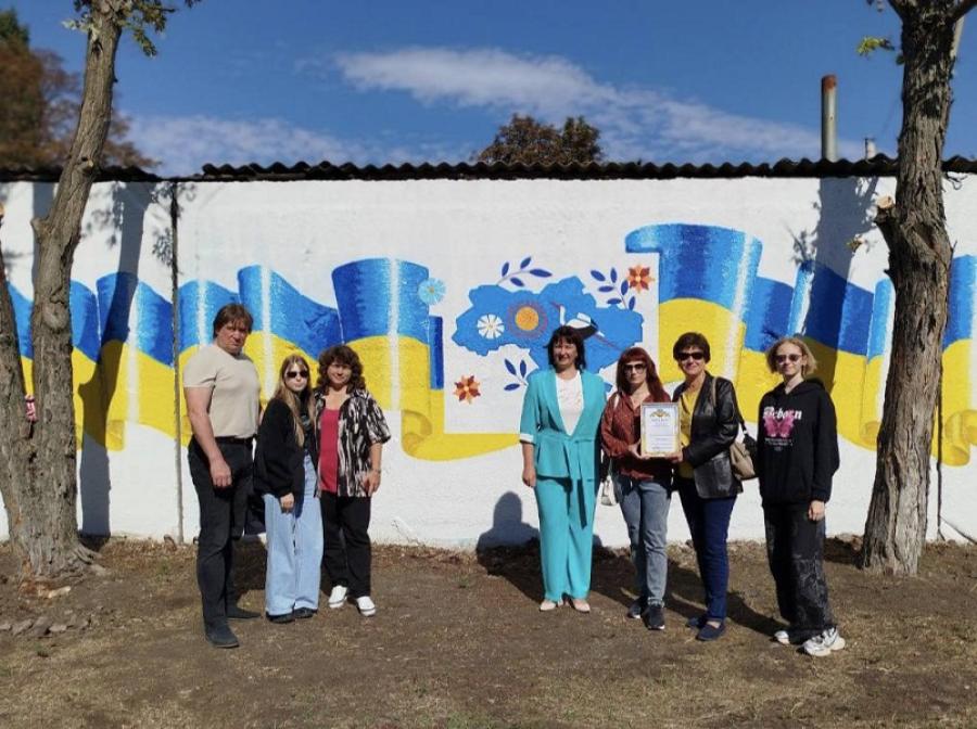 Паркан спортивного майданчика закладу освіти перетворився на справжню галерею патріотичних малюнків.