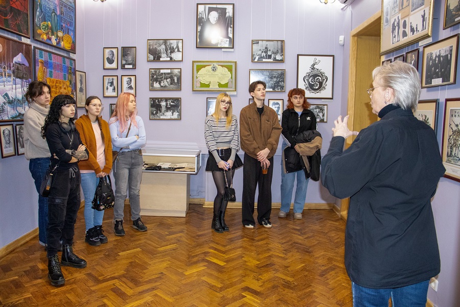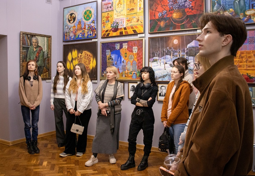 Принагідно студенти відвідали діючі виставки музею: живописні пастелі Народного художника України Миколи Прокопенка та абстракції Заслуженого художника України Віктора Олексенка. Студенти змогли поспілкуватись з Віктором Олексенком, який, зокрема, працює у галузі графічного дизайну, виступивши учасниками живого діалогу поколінь.