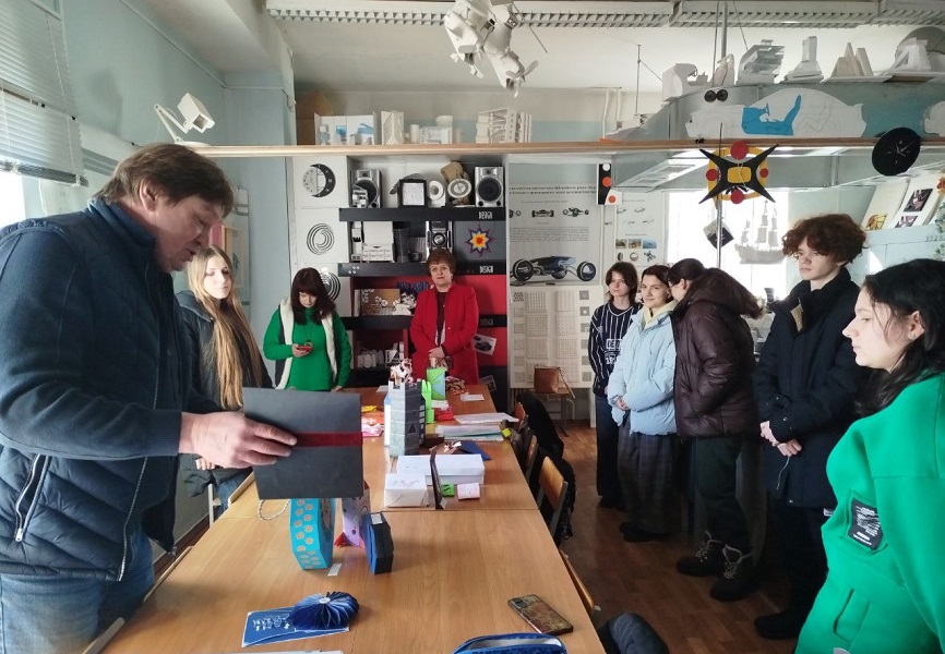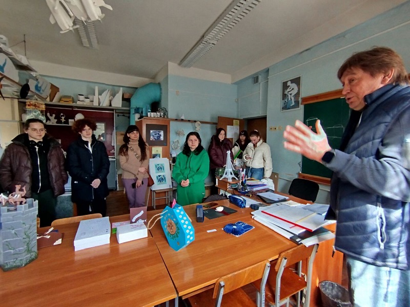 Зі свого боку гарант освітньої програми, доцентка кафедри дизайну Наталія Чугай зауважила, що спільним рішенням проєктної групи ОП «Дизайн-графіка та анімація» ухвалено рішення, що однією зі складових освітньо-професійної підготовки фахівців з анімації має стати макетування, оскільки воно поєднує художнє мислення, технічну точність і креативне моделювання візуального середовища. У процесі навчання макетування сприяє розвитку здатності студентів до просторового мислення, формує навички композиції, перспективи, світлотіньового моделювання, що є основою візуального наративу в анімації. Завдяки роботі з макетами майбутні аніматори навчаються бачити сцену як цілісну структуру, де кожен елемент має своє місце і функцію. Тому знайомство студентів із роботою в макетних матеріалах і було доручено саме Олександру Луговському.