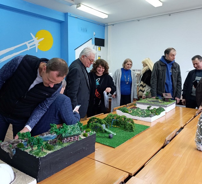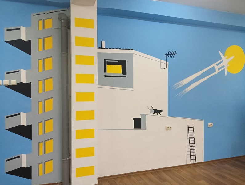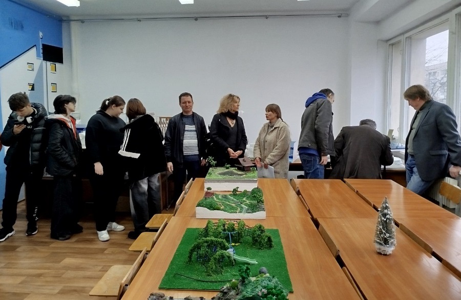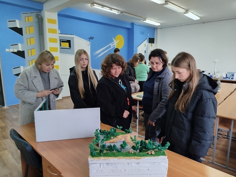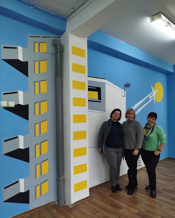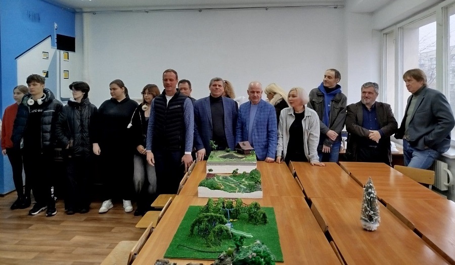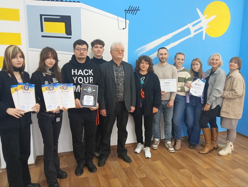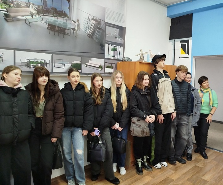 Магістри освітньої програми «Дизайн і візуальна культура» групи МДЗ-25 – Юлія Тимошина, Євгеній Денисенко, Ірина Дудіна, Анастасія Сіра, Кирило Рижак, Артем Коптєлий розробили ескіз проєкту і втілилили його в одній із авдиторій, де проходять покази робіт студентів-дизайнерів.