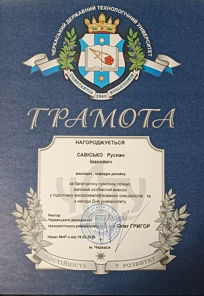 Викладача кафедри дизайну Руслана Савіська відзначили грамотою ЧДТУ